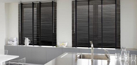 Estas persianas de madera dan calidez al espacio y tienen un ancho de lámina de 50 mm y 51 mm. Ofrecen 19 opciones de cintas decorativas de poliéster en una amplia gama de colores.